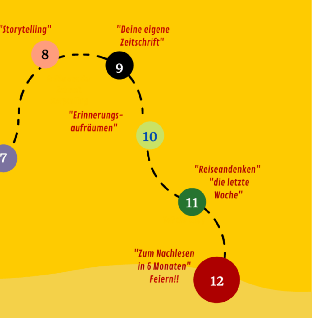 Die Reise beginnt hier: mit einem Blick in die Zukunft und mit einem Spüren, was dieses Vorhaben bieten kann. Wer jetzt schon sicher weiß, was sie/er genau will – also „zielstrebig“ ins Tun übergeht, darf sich ruhig noch ein paar mehr Gedanken machen: Über die eigenen Kräfte im „Gesundheitscheck“, über was passieren soll, wen sie/er mitnehmen möchte … um dann auch wirklich zu starten.