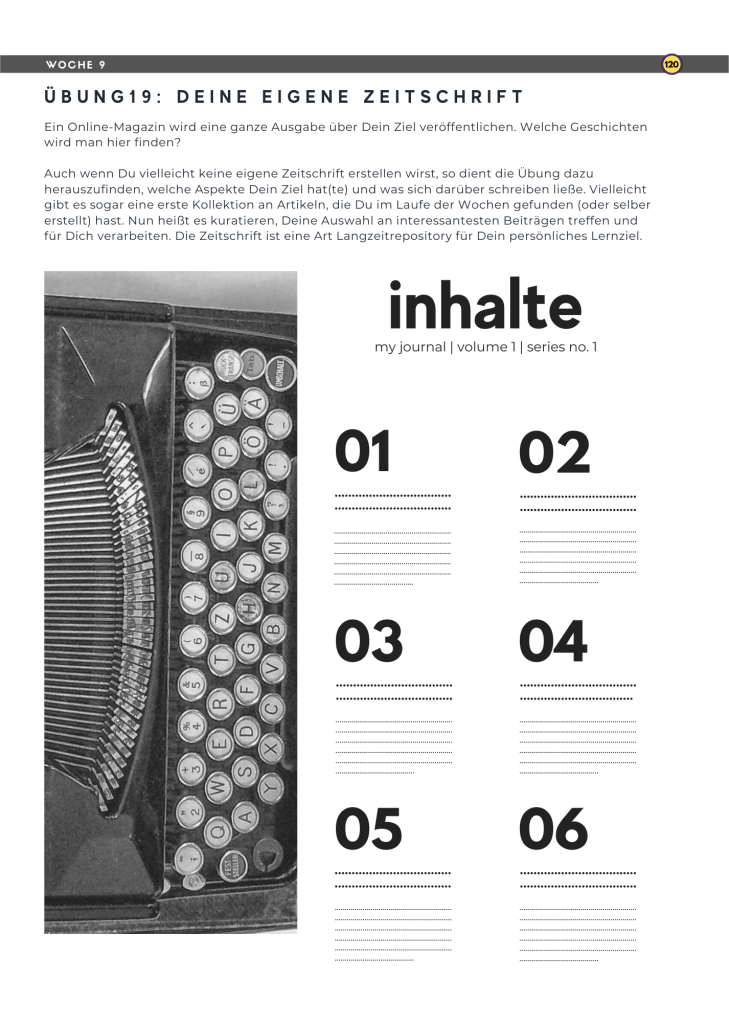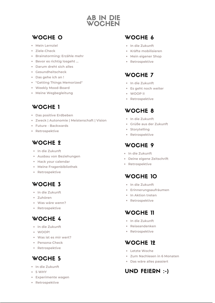 Wäre es nicht hilfreich, genau hier eine Begleitung zu haben, die zur Reflektion anregt, festhält, was passiert ist und was noch passieren soll? Dafür gibt es das Good-Journal, Deine Lernbegleitung. Es bietet wöchentliche strukturierte Anleitungen, Übungen und ausreichend Platz für wertvolle Gedanken.