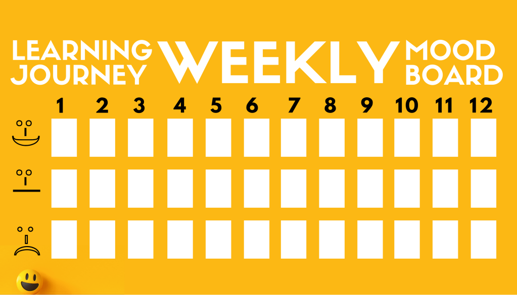 Das Mood-Board hält Deine Stimmung fest, Deine Zuversicht, Deine Befürchtungen und Sorgen. Jede Woche ein kurzer ehrlicher Blick Richtung Bauchgefühl und schon ist man sich klarer über den Zustand des eigenen Vorhabens. Frage Dich selber, was Dich motiviert oder Deinen Fortschritt behindert.