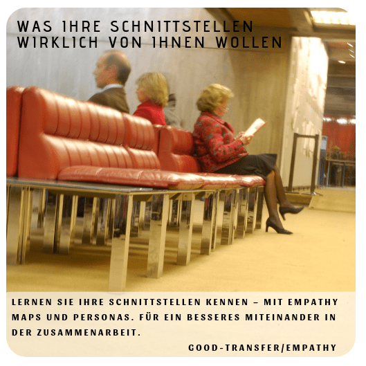Lernen Sie Ihre Schnittstellen besser kennen – mit den design thinking Werkzeugen Empathy Map und Persona. Learning Lab im Miniformat. https://good-transfer.com/empathy