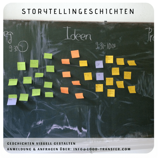 Storydesign einer visuellen Geschichte mit design thinking & future backwards Elementen. Interaktiver Workshop zum Austausch und kreativem Experimentieren in der Gestaltung visueller Geschichten. Zielsetzung: Erfahrungs- /Veränderungs-Geschichten in ein visuelles Narrative verwandeln.